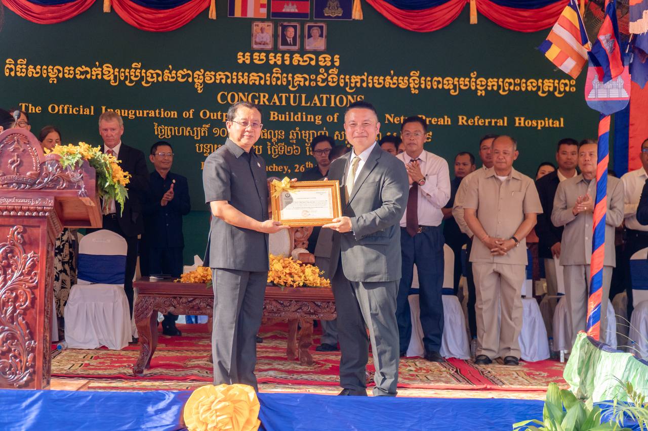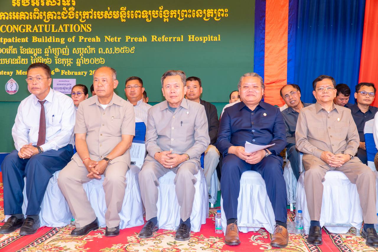បន្ទាយមានជ័យ៖ ឯកឧត្តមសាស្ត្រាចារ្យ ឈាង រ៉ា រដ្ឋមន្ត្រីក្រសួងសុខាភិបាល នារសៀលថ្ងៃព្រហស្បតិ៍ ១០កើត ខែផល្គុន ឆ្នាំម្សាញ់ សប្តស័ក ព.ស.២៥៦៩ ត្រូវនឹងថ្ងៃទី២៦ ខែកុម្ភៈ ឆ្នាំ២០២៦ បានអញ្ជើញជាអធិបតីក្នុងពិធីសម្ពោធដាក់ឱ្យប្រើប្រាស់ជាផ្លូវការអគារពិនិត្យនិងពិគ្រោះជំងឺក្រៅ នៃមន្ទីរពេទ្យបង្អែកព្រះនេត្រព្រះ ខេត្តបន្ទាយមានជ័យ ជាជំនួយរបស់សមាគមសាសនាចក្រនៃព្រះយេស៊ូគ្រីស្គនៃពួកបរិសុទ្ធថ្ងៃចុងក្រោយ។