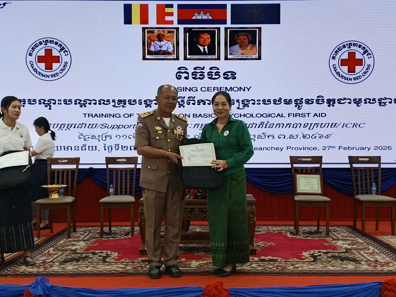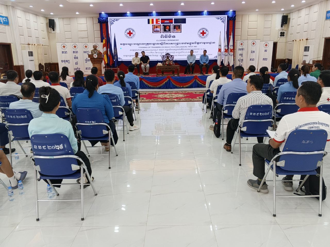 ខេត្តបន្ទាយមានជ័យ៖ក្រោយពីសិក្ខាកាម មកពី២៣ រាជធានី ខេត្ត រៀនវគ្គបណ្ដុះបណ្ដាលគ្រូបង្គោល និងសុខភាពផ្លូវចិត្តនិងចិត្តសាស្ត្រសង្គមអស់រយៈពេល៥ថ្ងៃ ចាប់ពីថ្ងៃទី២៣ដល់ថ្ងៃទី២៧ ខែកុម្ភៈ ឆ្នាំ២០២៦ ដែលគណៈកម្មាធិការសាខាកាកបាទក្រហមខេត្ត បន្ទាយមានជ័យជាម្ចាស់ផ្ទះ អស់រយៈពេល ៥ថ្ងៃរួចមកគេសង្កេតឃើញថា សិក្ខាកាមទាំងអស់មានការយល់ដឹងពីសុខភាពផ្លូវចិត្ត និងចិត្តសាស្ត្រសង្គម ពិសេសចំពោះបងប្អូនជាជនភៀសសឹកដែលកំពុងស្នាក់នៅបណ្ដោះអាសន្នទីសុវត្ថិភាពនៅក្នុងភូមិសាស្ត្រនៃខេត្តបន្ទាយមានជ័យ។
