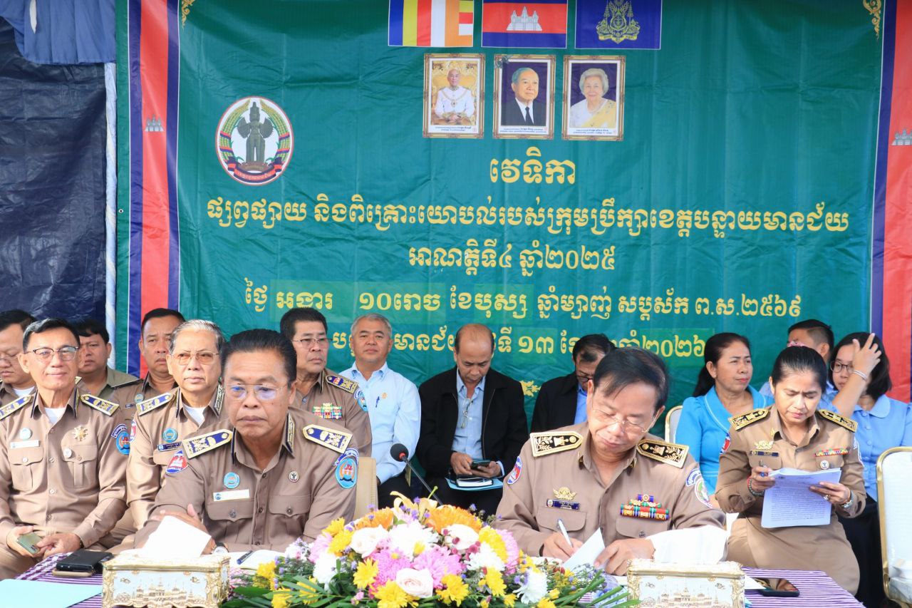 (បន្ទាយមានជ័យ)៖ឯកឧត្ដម ប្លែក វ៉ារី ប្រធានក្រុមប្រឹក្សាខេត្ត លោក ឈឿន ក្រៃយ៉ុង អភិបាលរង ខេត្ត តំណាងឲ្យឯកឧត្តម អ៊ុំ រាត្រី អភិបាល នៃគណៈអភិបាលខេត្តបន្ទាយមានជ័យ បានអញ្ជើញជាអធិបតីភាពក្នុងវេទិកាផ្សព្វផ្សាយ និងពិគ្រោះយោបល់របស់ក្រុមប្រឹក្សាខេត្តបន្ទាយមានជ័យ អាណត្តិទី៤ ឆ្នាំ២០២៥ នៅបរិវេណសាលាស្រុកម៉ាឡៃ ខេត្តបន្ទាយមានជ័យ ។ពិធីនេះបានធ្វើឡើងនាថ្ងៃទី១៣ ខែមករា ឆ្នាំ២០២៦ ដោយមានការអញ្ជើញចូលរួមពីលោក លោកស្រី សមាជិកក្រុមប្រឹក្សាខេត្ត គណៈអភិបាលរង ខេត្តបណ្ដាមន្ទីរអង្គភាពពាក់ព័ន្ធ អភិបាលស្រុកម៉ាឡៃ ក្រុមប្រឹក្សាស្រុក ឃុំ មេភូមិផងដែរ។