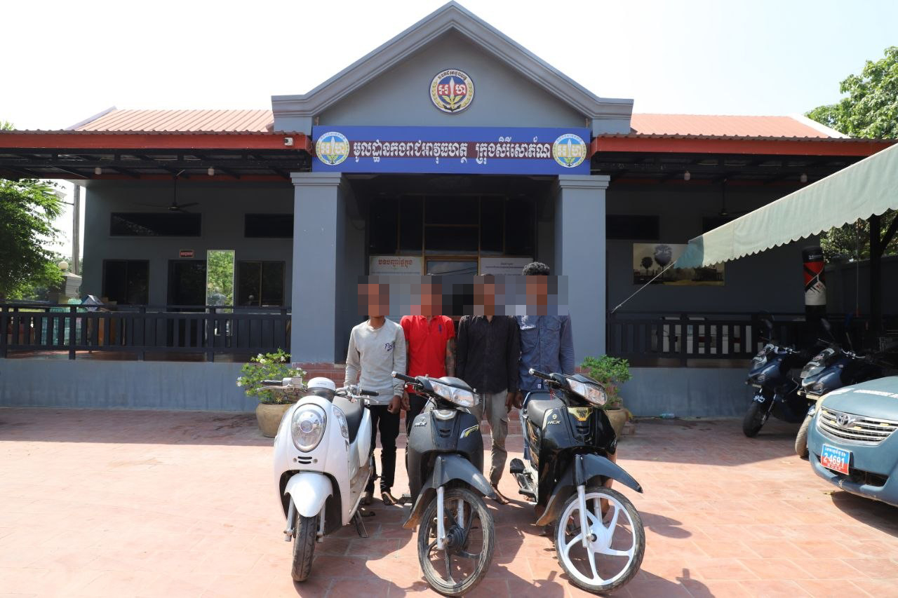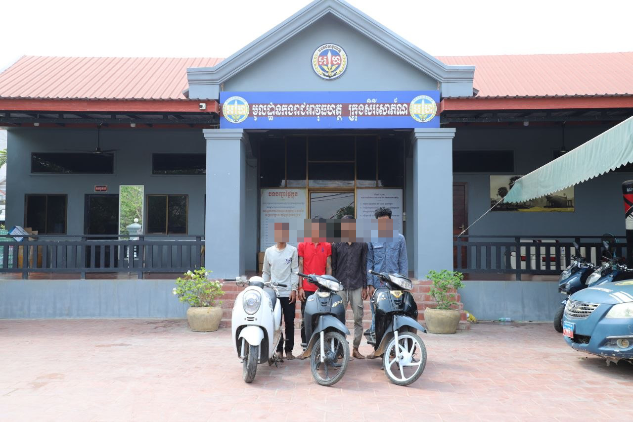 លោកវរសេនីយ៍ត្រី សុខ ឡេង មេបញ្ជាការមូលដ្ឋានកងរាជអាវុធហត្ថក្រុងបានឱ្យដឹងថា ដោយមានការសហការពីជនសង្ស័យឈ្មោះ រ៉ន រិទ្ធ នៅវេលាម៉ោង០៨ និង៣០នាទី ថ្ងៃទី២៧ ខែមីនា ឆ្នាំ២០២៦ កម្លាំងជំនាញបន្តធ្វើការឃាត់ខ្លួនជនសង្ស័យចំនួន០៣នាក់បន្ថែមទៀត ១.ឈ្មោះ ចិន ថាត់ ភេទប្រុស អាយុ១៧ឆ្នាំ, ២.ឈ្មោះ ពក រស្មី ភេទប្រុស អាយុ១៧ឆ្នាំ, ៣.ឈ្មោះ ប៊ន រ៉ាត់ ភេទប្រុស អាយុ៤៣ឆ្នាំ (មេក្លោង) ជនសង្ស័យទាំង០៣នាក់ស្នាក់នៅជំរុំជនភៀសសឹក ស្ថិតនៅវត្តច័ន្ទស៊ី ស្ថិតក្នុងភូមិកូបកើត ឃុំកូប ស្រុកអូរជ្រៅ ព្រមទាំងដកហូតវត្ថុតាងម៉ូតូចំនួន០១គ្រឿង ហើយនាំមកកាន់មូលដ្ឋានកងរាជអាវុធហត្ថក្រុងសិរីសោភ័ណ ដើម្បីកសាងសំណុំរឿងនិងចំណាត់ការតាមនីតិវិធី។