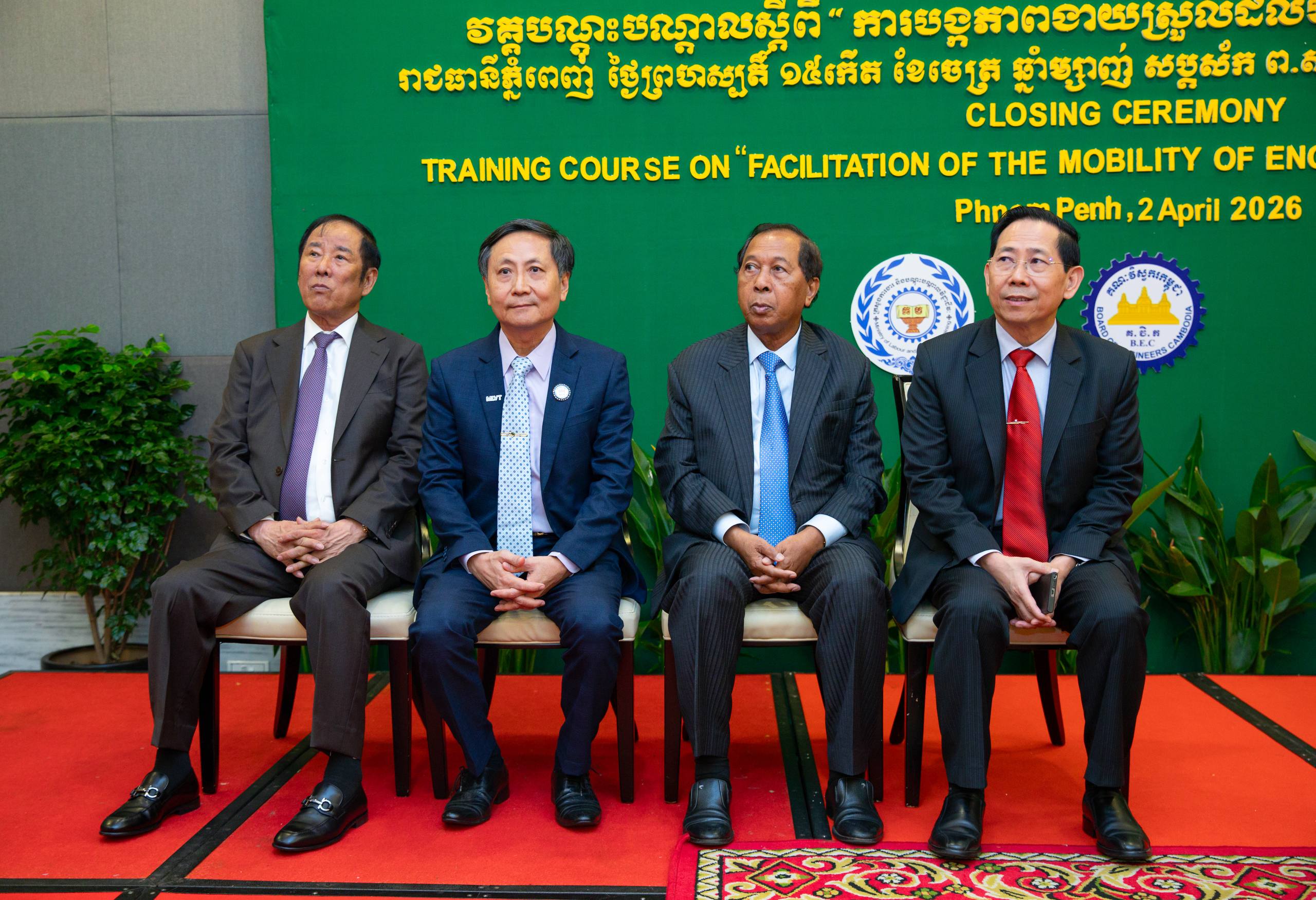 ជាមួយនឹងការអបអរសាទរសិក្ខាកាមទាំង៦២នាក់(ស្រ្តី៤នាក់)ក្នុងអនុតំបន់មេគង្គដែលរួមមានវិស្វករកម្ពុជា វៀតណាម ឡាវ និងមីយ៉ាន់ម៉ា បានបញ្ចប់វគ្គបណ្តុះបណ្តាលដោយជោគជ័យនាពេលនេះ ឯកឧត្តមរដ្ឋមន្រ្តី បានថ្លែងអំណរគុណយ៉ាងជ្រាលជ្រៅចំពោះក្រុមប្រឹក្សាគណៈវិស្វករកម្ពុជា (BEC) និងមូលនិធិពិសេសសម្រាប់គម្រោងកិច្ចសហប្រតិបត្តិការមេគង្គ–ឡានឆាងសម្រាប់កិច្ចសហការរៀបចំវគ្គបណ្តុះបណ្តាលនេះឡើង ដែលក្រៅពីការផ្លាស់ប្តូរបច្ចេកទេស វាក៏បានឆ្លុះបញ្ចាំងពីការប្តេជ្ញាចិត្តរួមក្នុងការលើកកម្ពស់ស្តង់ដាវិស្វកម្មដល់កម្រិតសកលផងដែរ។