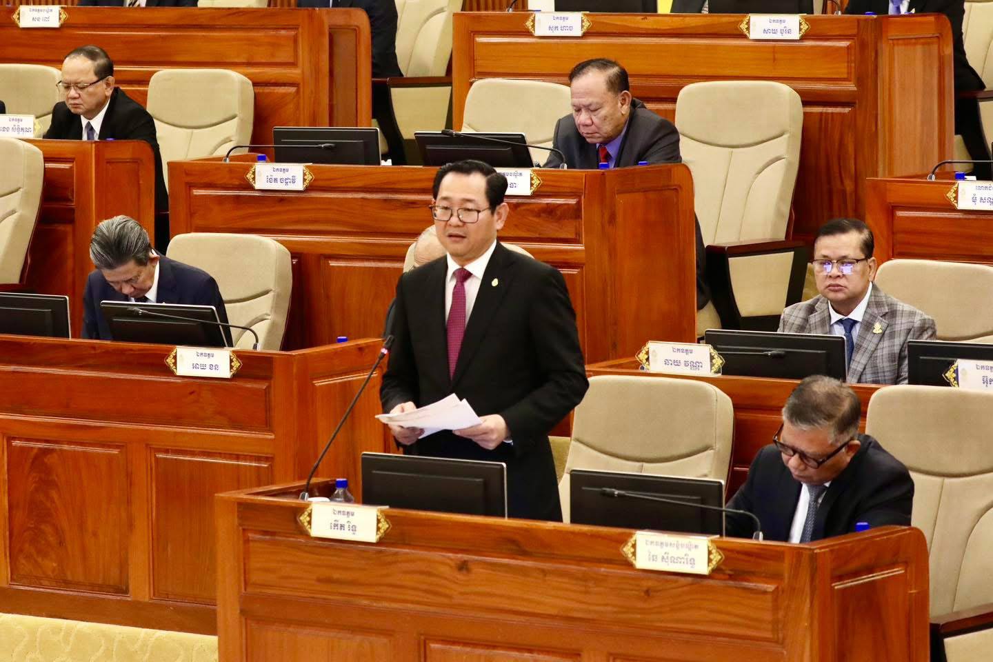 ភ្នំពេញ៖ នៅព្រឹកថ្ងៃទី៣ ខែមេសា ឆ្នាំ២០២៦ នេះ ដោយទទួលបានការចាត់តាំងដ៏ខ្ពង់ខ្ពស់ពីសម្តេចមហាបវរធិបតី ហ៊ុន ម៉ាណែត នាយករដ្ឋមន្ត្រី នៃព្រះរាជាណាចក្រកម្ពុជា ឯកឧត្តម កើត រិទ្ធ ឧបនាយករដ្ឋមន្ត្រី រដ្ឋមន្ត្រីក្រសួងយុត្តិធម៌ បានអញ្ជើញជាតំណាងរាជរដ្ឋាភិបាល ការពារសេចក្តីព្រាងច្បាប់ស្តីពីការប្រឆាំងការឆបោកតាមប្រព័ន្ធបច្ចេកវិទ្យា ក្នុងសម័យប្រជុំព្រឹទ្ធសភាជាវិសាមញ្ញ នីតិកាលទី៥ ដោយមានគណៈប្រតិភូអមរួមមាន៖ ឯកឧត្តមសន្តិបណ្ឌិត ឆៃ ស៊ីណារិទ្ធ ទេសរដ្ឋមន្ត្រី និងជាប្រធានលេខាធិការដ្ឋានគណៈកម្មការចំពោះកិច្ចប្រយុទ្ធប្រឆាំងការឆបោកតាមប្រព័ន្ធបច្ចេកវិទ្យា និងសមាសភាពពីទីស្តីការគណៈរដ្ឋមន្ត្រី និងក្រសួងយុត្តិធម៌។