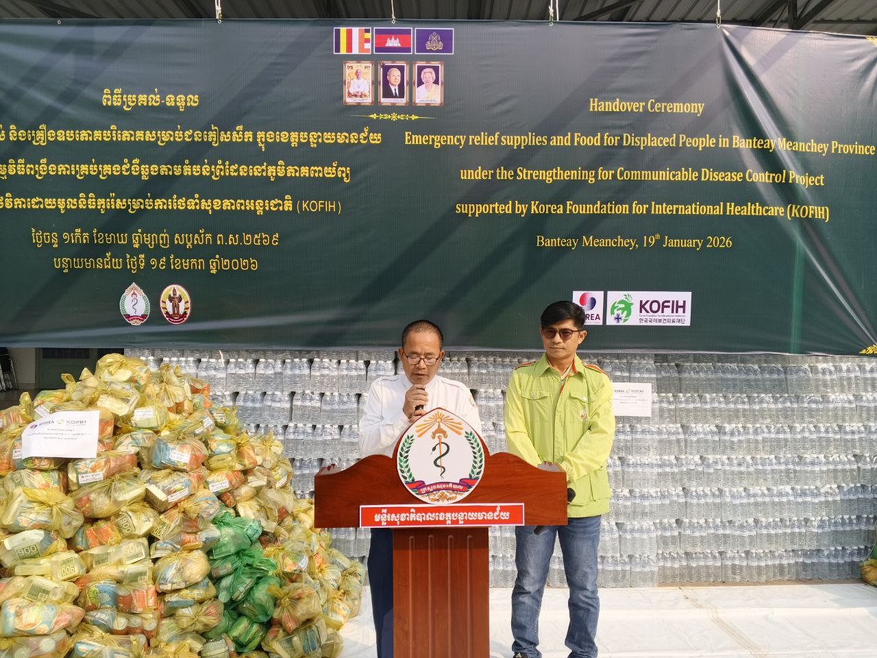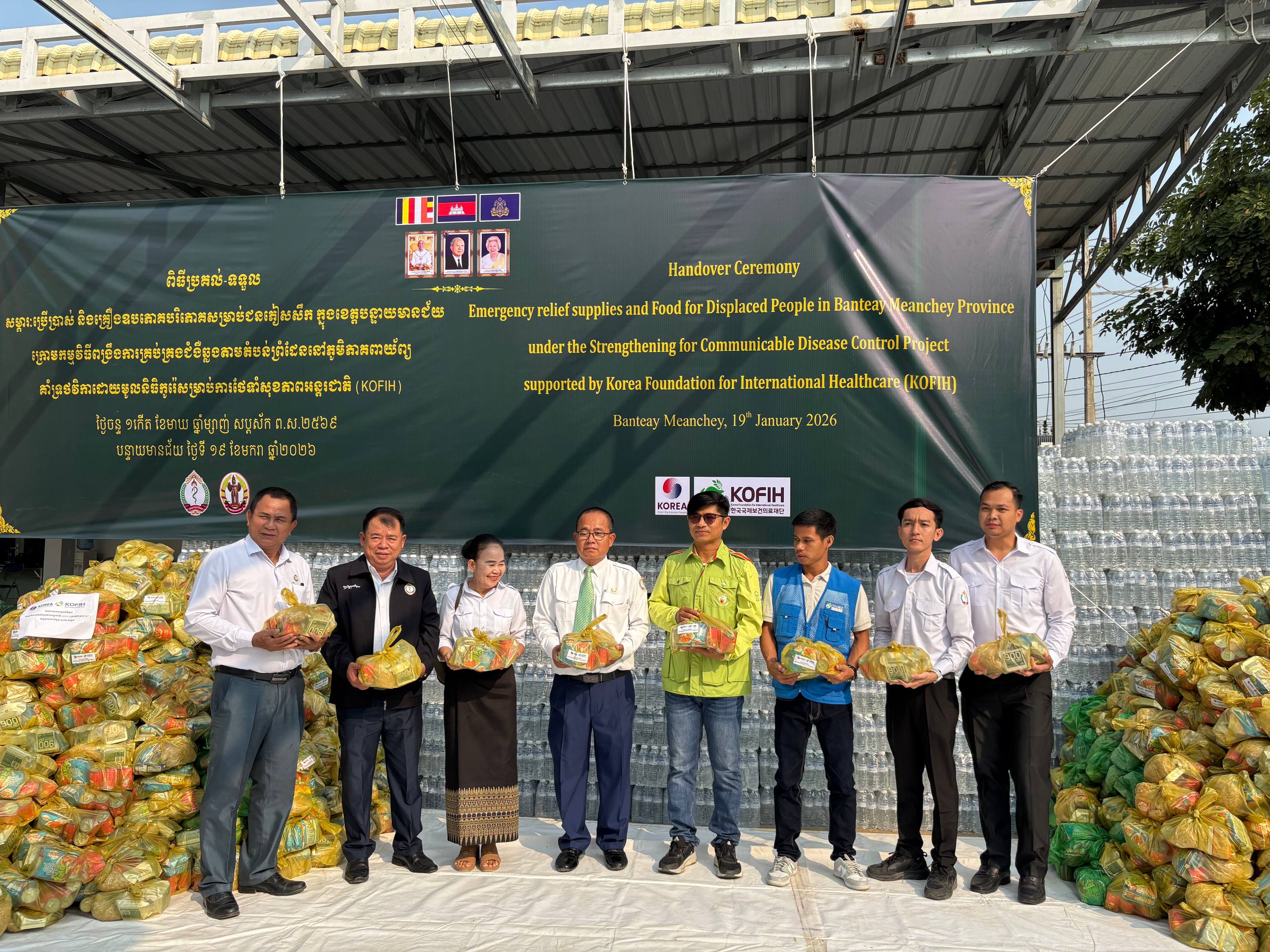 បន្ទាយមានជ័យ៖នាព្រឹក ថ្ងៃចន្ទ ទី១៩ ខែមករា ឆ្នាំ២០២៦ នៅមន្ទីរសុខាភិបាលខេត្តបន្ទាយមានជ័យ បានរៀបចំពិធីប្រគល់ទទួលសម្ភារៈប្រើប្រាស់និងគ្រឿងឧបភោគបរិភោគ នៅក្នុងខេត្តបន្ទាយមានជ័យ ក្រោមកម្មវិធីពង្រឹងការគ្រប់គ្រងជំងឺឆ្លងតាមតំបន់ព្រំដែននៅភូមិភាគពាយ័ព្យ គាំទ្រថវិកាដោយមូនិធីកូរ៉េ សម្រាប់ការថែទាំសុខភាពអន្តរជាតិ KOFIH។