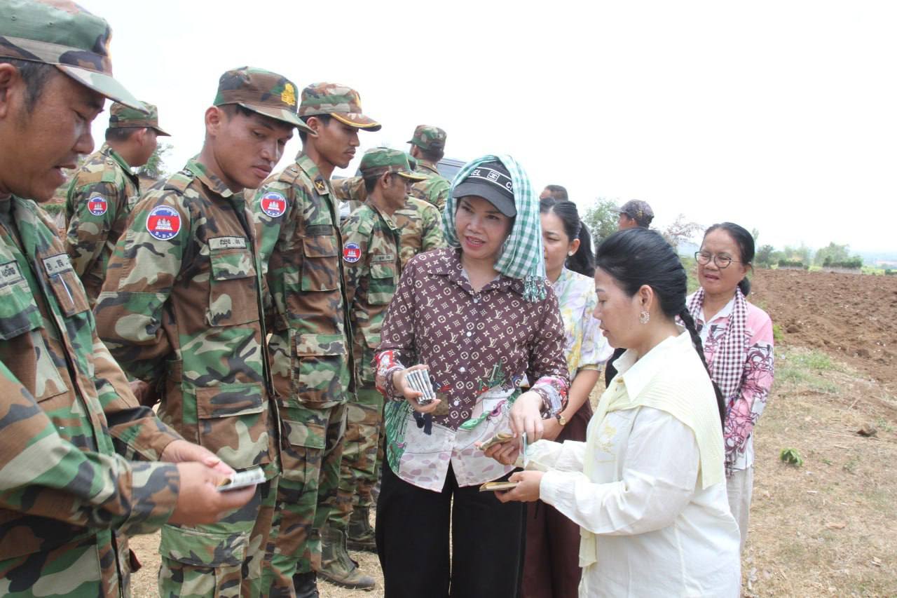 ឯកឧត្តមទេ​សរដ្ឋមន្ត្រី អ៊ី ឈាន ប្រធានក្រុមការងា​ររាជរដ្ឋាភិបាល​ចុះមូលដ្ឋានខេត្តប៉ៃលិន បាន​នាំម​កនូវការផ្តាំផ្ញើសួរសុខទុក្ខ និងសេចក្ដីនឹក​រលឹកពីសំណាក់សម្តេចអគ្គមហាសេនាបតីតេជោ ហ៊ុន សែន ប្រធាន​ព្រឹទ្ធសភា និងសម្តេចមហាបវរធិបតីហ៊ុន ​ម៉ាណែត នាយករដ្ឋមន្ត្រី នៃព្រះរាជាណា​ចក្រកម្ពុជា​ ដែលតែ​ងយកចិត្ត​ទុកដាក់ និងព្រួយ​បារម្ភពីសុខទុក្ខរបស់បងប្អូនវីរកងទ័ពជួរ មុខគ្រប់កា​លៈទេសៈ​ ខណៈពេលដែល​ប្រទេសជិតខាងបានចូលឈ្លានពានបូរណៈភាពទឹកដី ក្នុងនោះសម្តេច​បានគិតគូខ្ពស់​ ចំពោះជី​វភាពរស់នៅរប​ស់ប្រជាពលរដ្ឋ និង​កងកម្លាំងយើង ដែលកំពុងឈរជើង ការពារបូរណភាពទឹកដី នៅតាម​បណ្តោយព្រំដែន។