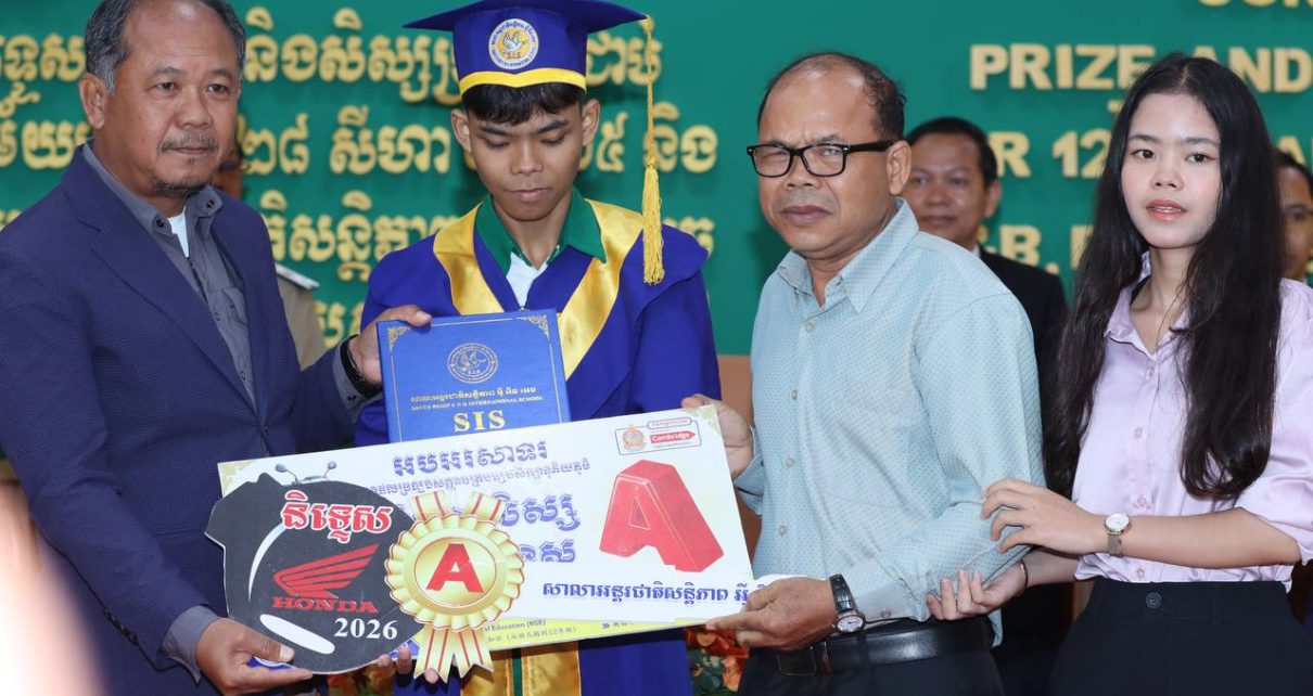 អភិបាលខេត្តបន្ទាយមានជ័យ ប្រគល់រង្វាន់ម៉ូតូ របស់សាលាអន្តរជាតិ សន្តិភាព អ៊ី អិន អេច ជូនសិស្សទទួលបាននិទ្ទេសA ចំនួន៣នាក់